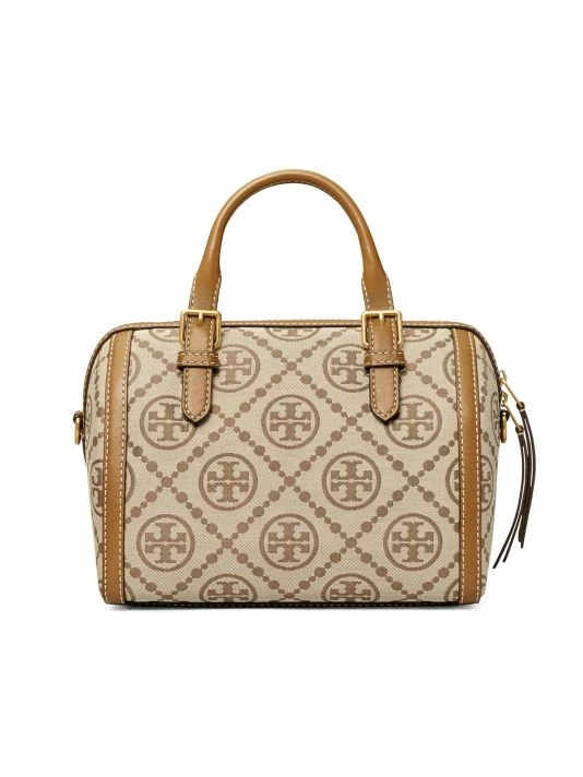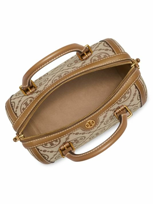 Crafted of signature monogram with a smooth leather trim, this structured barrel bag flaunts goldtone logo hardware.
