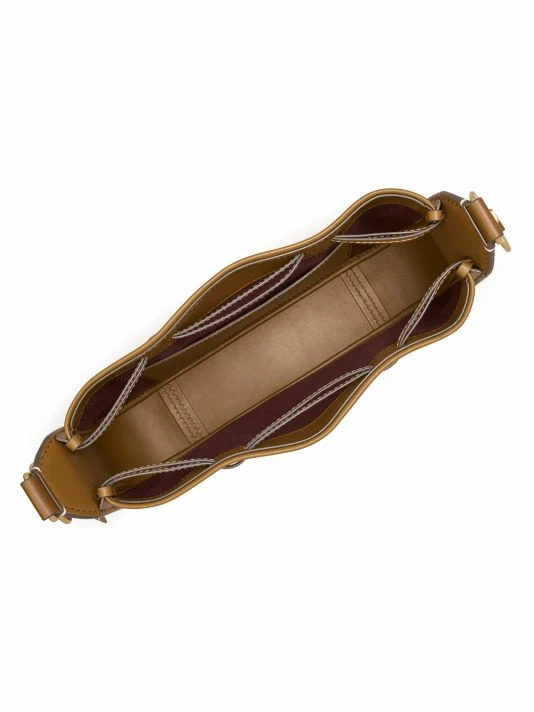 Cinched with a decorative drawstring closure, Tory Burch’s bag is crafted of signature T Monogram jacquard. This tapered silhouette is trimmed with smooth leather.