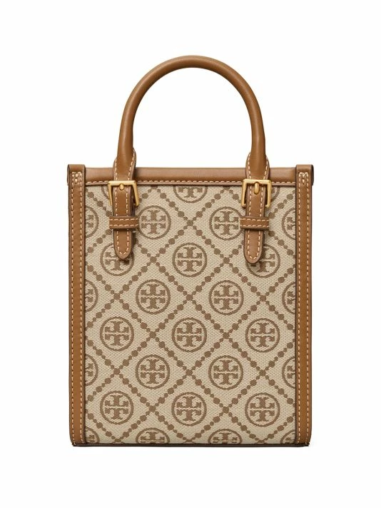 The T Monogram Jacquard Mini Tote is trimmed in fine leather, with adjustable handles and a detachable crossbody strap.