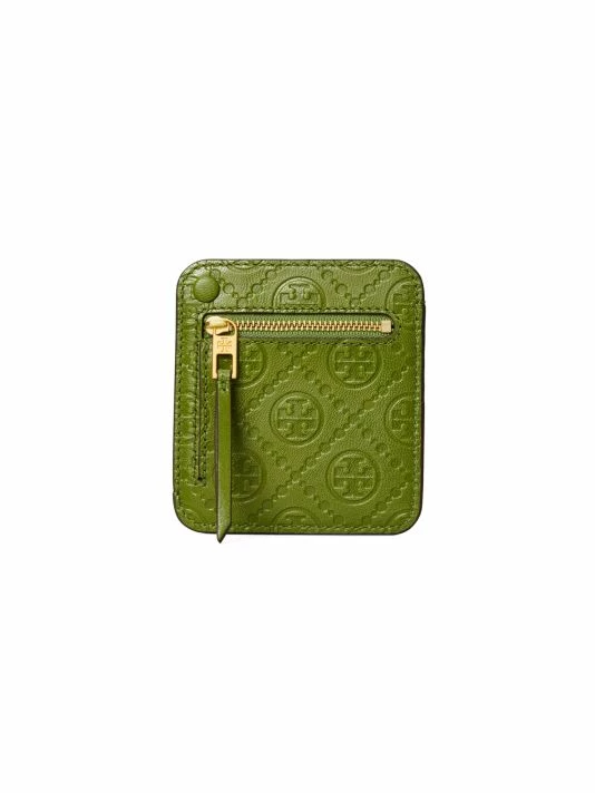 This slim zippered card case is crafted of buttery-soft leather with a monogram debossed finish.