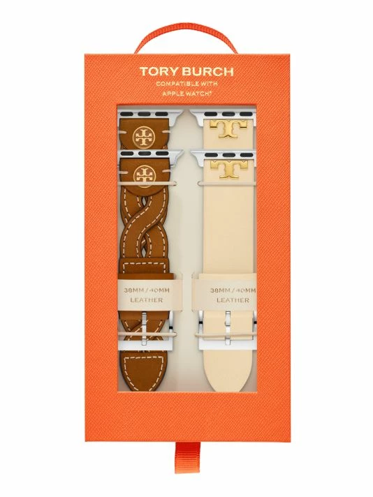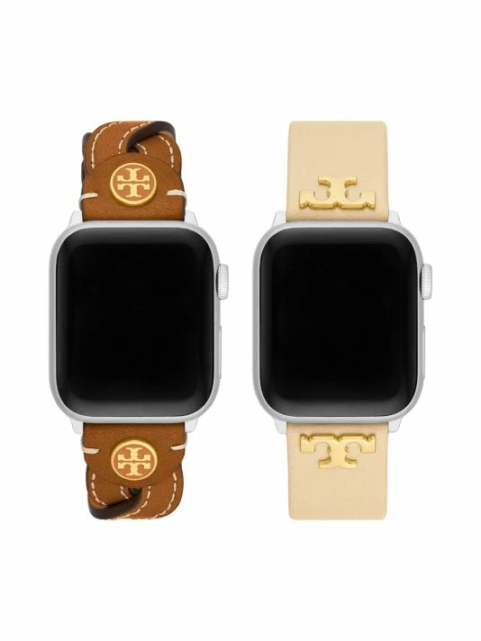 Set of two straps for the Apple®watch includes a braided and smooth ivory leather band featuring the label’s signature Serif-T medallions. Apple® watch is a trademark of apple, inc.
