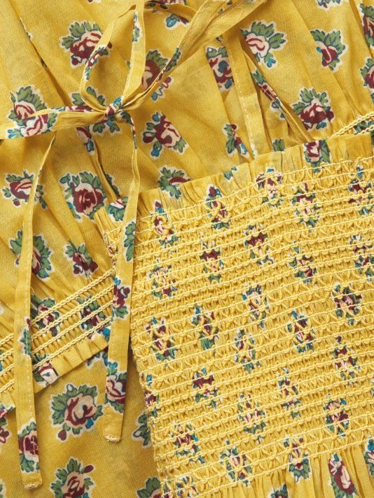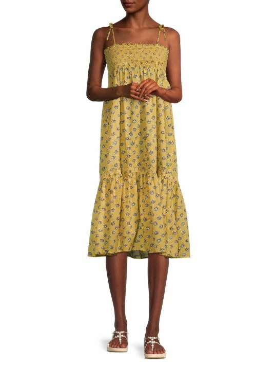 Cut in a tiered silhouette, Tory Burch’s sleeveless midi-dress is elevated by a smocked bodice and micro floral print.