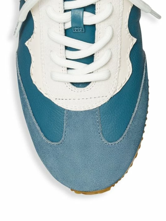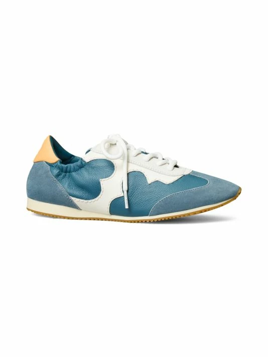 A supple mix of leather and suede elevates these elasticized lace-up sneakers.