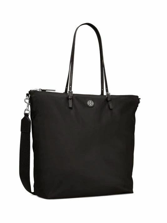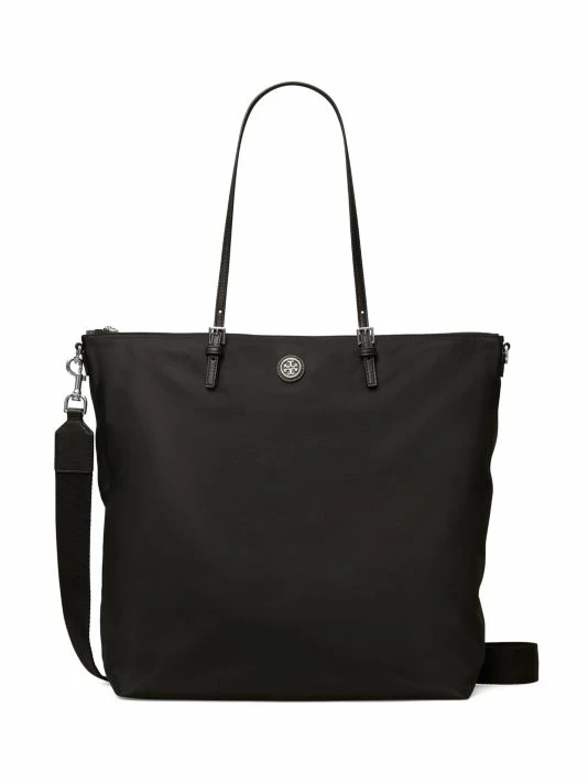Durable nylon creates this spacious tote, highlighted with double T-logo patch.