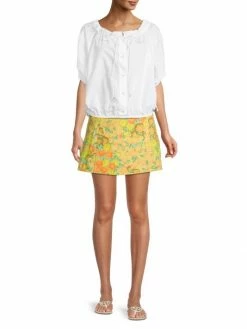 Tory Burch Top Poplin Tie-Neck Lemon Lime