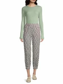 Tory Burch Sweater Ribbed Metallic Stripe Clear Mint